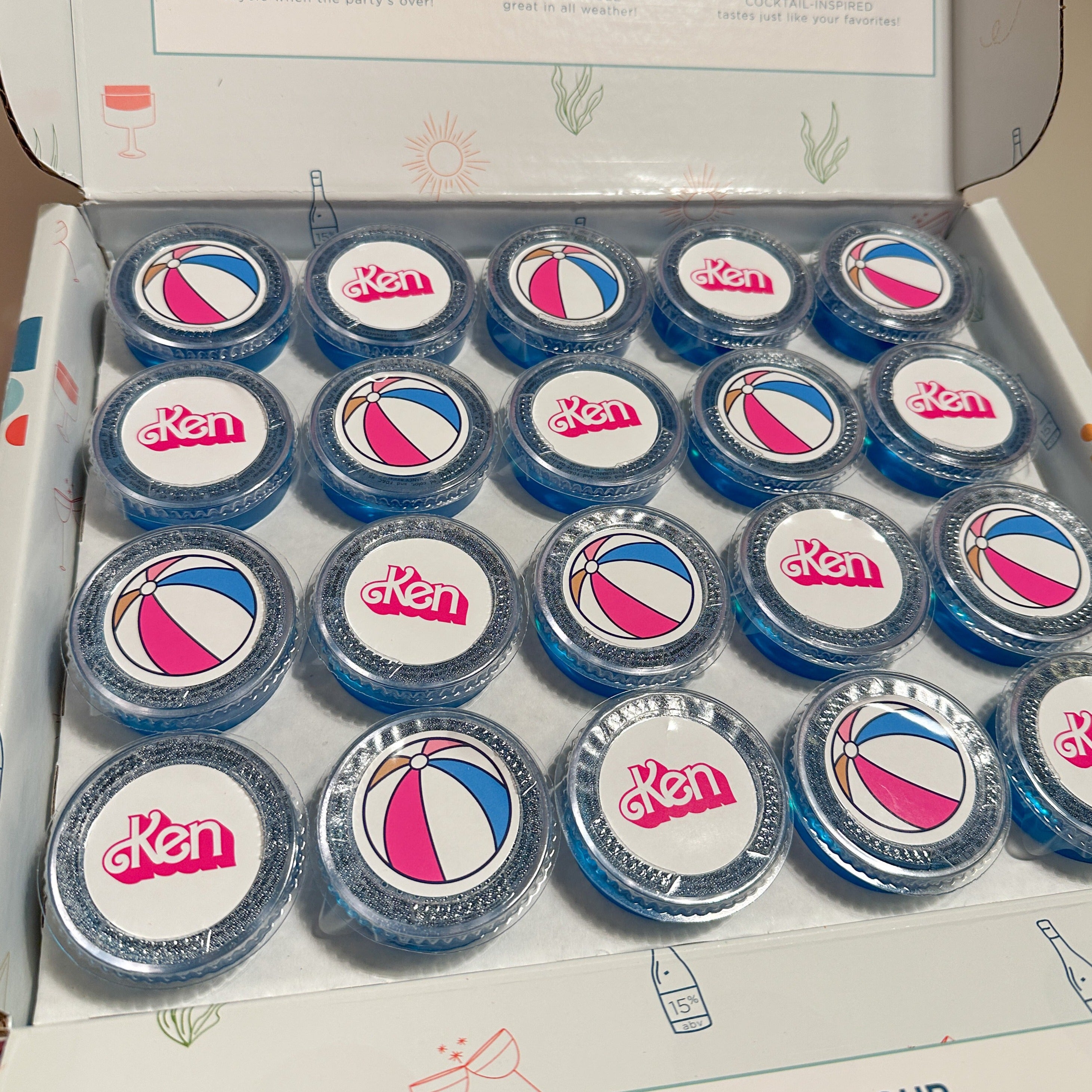 Add to the ultimate Barbie party with this Ken inspired party pack.  This box comes with 20 Citrus Punch Blue Boozy Bites complete and Barbie inspired customization.